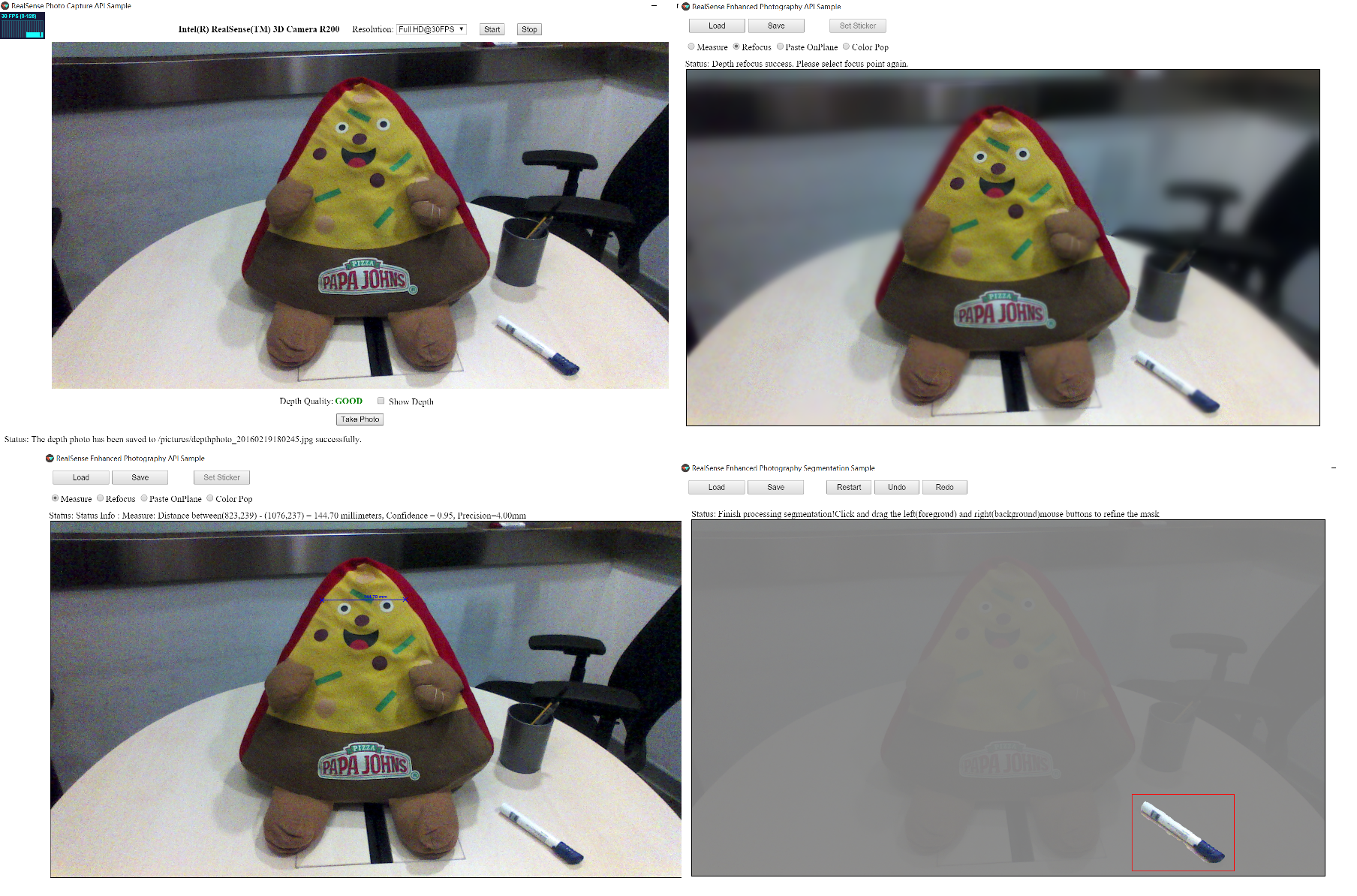 The screenshots below show a few of the features that are available with Crosswalk Project Extensions for Intel® RealSense™ Technology.