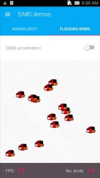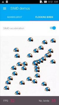 About 17 birds can be generated without SIMD and about 32 birds with SIMD enabled.