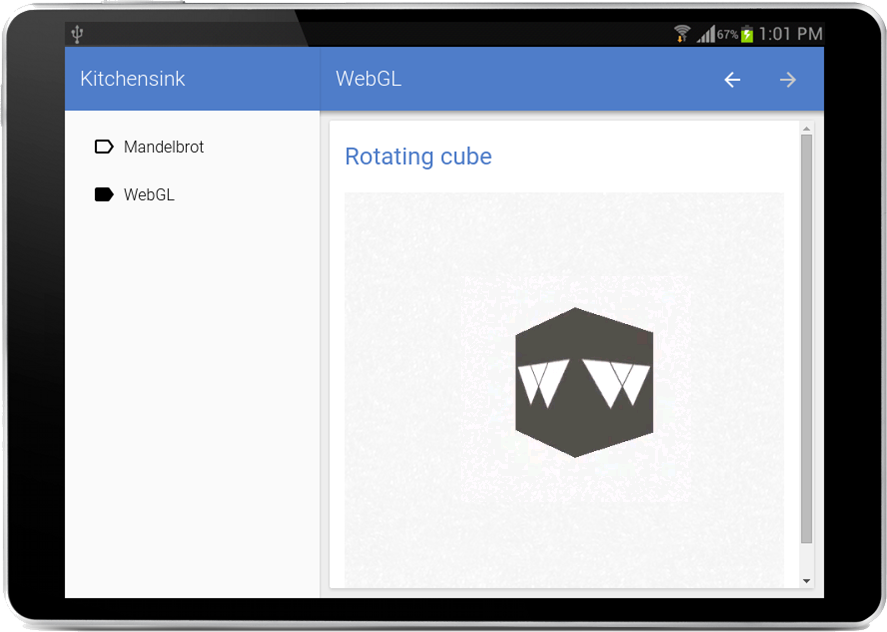 The immediate benefit of bundling an application with the Crosswalk webview is that everywhere your application runs, it uses the same, Chromium-based runtime. This reduces or eliminates many of the headaches encountered with older webviews. (The web app run below uses Web Components and WebGL.)