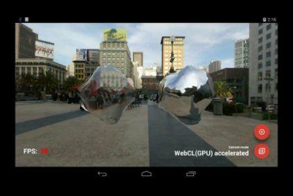 Building your web app with Crosswalk enables you to take advantage of new web app features and libraries. One example is WebCL which enables web apps to leverage the GPU to accelerate graphics processing. (The video below is a screen capture of an arm-based Nexus 7.)