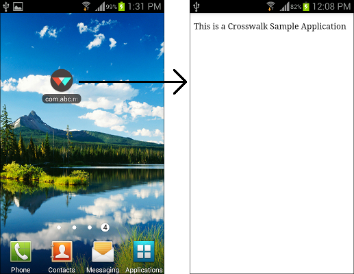 Installing and running an application built with Crosswalk requires an Android target (either emulated or actual device). For assistance, see the Android target setup page.